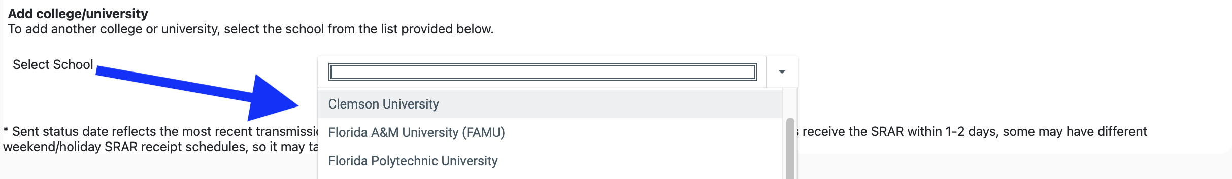 You may add any of the colleges or universities listed onto your SRAR/SSAR. Once linked and submitted, each school will receive the SRAR/SSAR and any subsequent SRAR/SSAR updates.